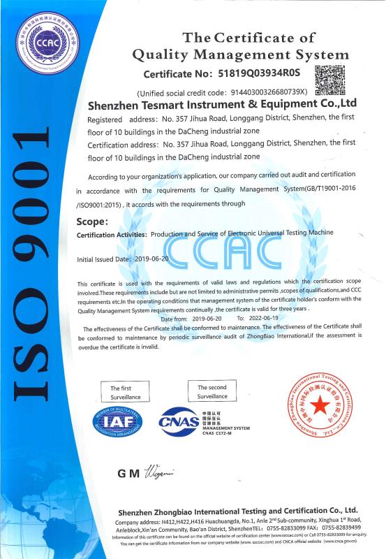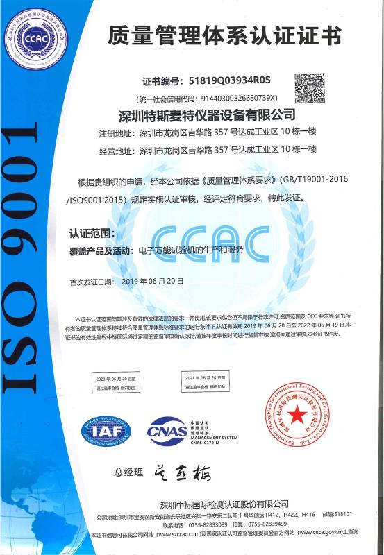 近日,我公司通過(guò)了“ISO9001質(zhì)量管理體系認(rèn)證”,標(biāo)志著特斯麥特在產(chǎn)品物理性能測(cè)試系統(tǒng)解決方案及系統(tǒng)實(shí)施領(lǐng)域的質(zhì)量管理體系已達(dá)到國(guó)際互認(rèn)標(biāo)準(zhǔn),企業(yè)已經(jīng)通過(guò)科學(xué)、高效的管理與創(chuàng)新機(jī)制,構(gòu)建了健康、可持續(xù)發(fā)展的內(nèi)在驅(qū)動(dòng)力。